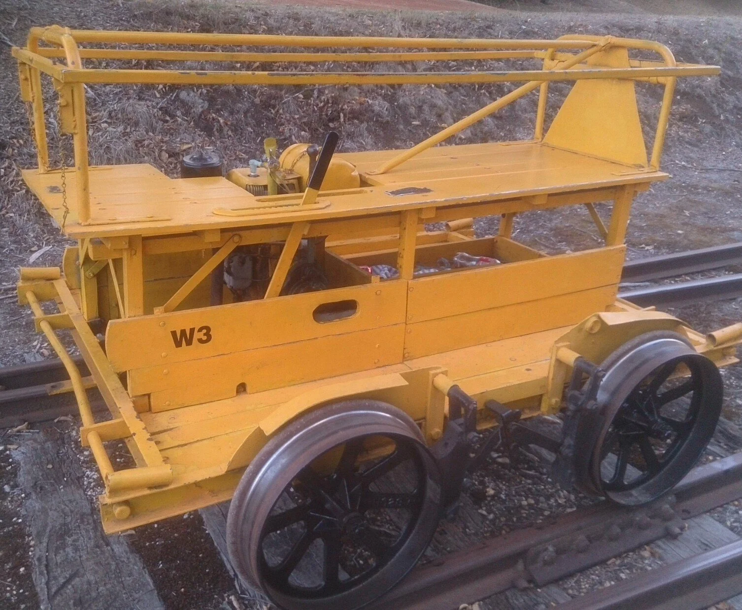 "The Victorian 63" trolley is the original KS type, which became the 6W when the engine in it and the K type where replaced with the Wisconsin AENLD 9.2 hp engine, and the Granite State Machine Co. model 5101E reversing gearbox.